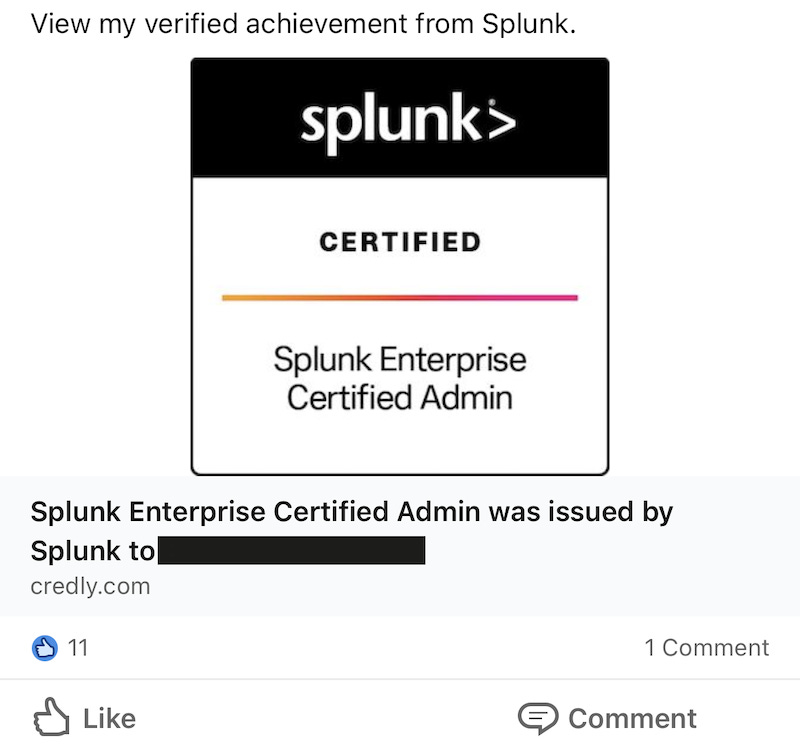 I found this passive example on LinkedIn in a social media post from Splunk. In the post, Splunk is celebrating one of their clients successfully passing their Splunk Enterprise Certified Admin test.